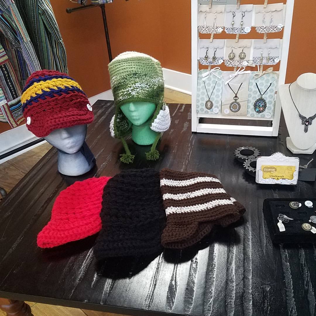 Warm cozy hats are here! Handmade crochet wool-free caps and upcycled hoods created by Kate Westfall of Brain Blankets. For more info follow Westfall Refinery on Facebook. Kate is a singer, songwriter, artist from central Ohio. You can find more of her creations on her Etsy page.